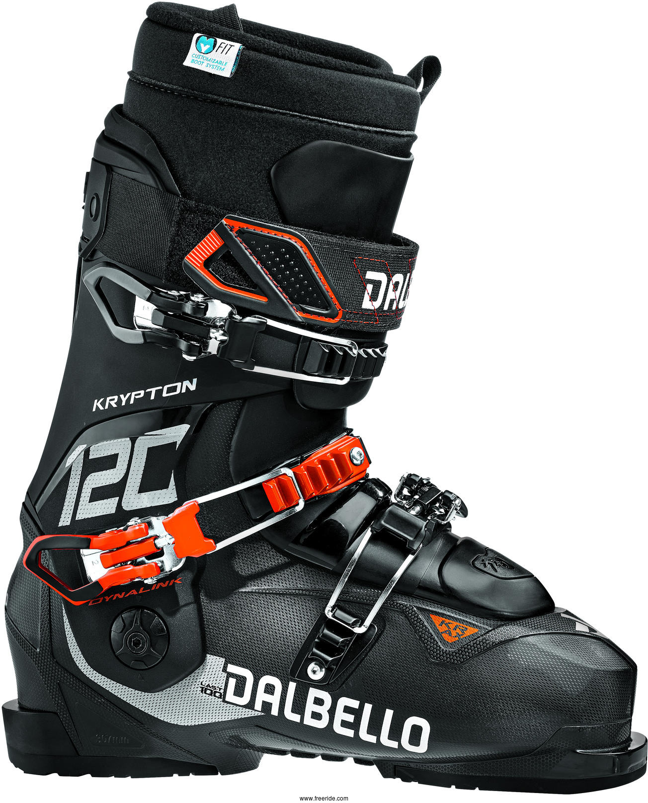 KRYPTON AX 120 ID är en riktigt seriös friåkningssko med lite bredare lästvidd i full PU-plast för riktigt hög kraftöverföring och den patenterade Cabrio konstruktionen med separat flextunga för optimal progressiv flex. Givetvis sitter mittenspännet DynaLink inte fast i manschetten utan rätt ner i skalet för att säkerställa konstant kontakt med foten och optimalt hälgrepp oavsett manschettens rörelse. Alla modeller i Krypton serien är framtagna för att individualisera pjäxan maximalt: marknadens största intervall av justerbar flex, vinkeljustering både framåt och i sidled och 3 olika hårdheter av den stötdämpande nylon tungan finns att tillgå. Detta tillsammans med marknadens varmaste och 100% formbara foam-innersko I.D. MAX med hård/medium densitet i s.k. wrap konstruktion vilket ger dubbla lager formbart material i innerskon mot skenbenet. Lästvidd: 100mm, Flex 100-140