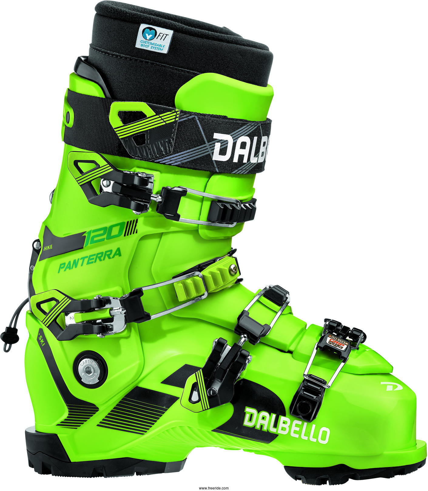 Legendariskt limegula Panterra 120 från Dalbello har till denna säsong fått en hel del uppgraderingar. Kvar är självklart den väldigt hyllade invändiga passformen men nya Panterra är betydligt mer slimmad exteriört. Dessutom har gåläget utvecklats samt förstärkts och är nu på hela 50 grader och har mindre friktion än tidigare. Hälgreppet är tightare än tidigare och insteget mer öppet för lättare in- och ursteg. Vikten har sänkts genom att använda "Power Cage" teknologi där partierna för kraftöverföring förstärkts och onödig massa skalats av. Panterra 120 ID finns för de starkare eller tyngre skidåkarna med ännu högre krav på kraftöverföring och hårdare flex. Kommer med den mest populära och varma ID Now wrap-innerskon i 100% Ultralon med medium/soft densitet vilken ger den komfortabla och den eftertraktade ”plug-fit” känslan som tidigare enbart gick att hitta hos riktiga formsprutade innerskor. Irfran plast och s.k. laserstructure behandling av ytskiktet. Förmonterade med GripWalk sulor, alpin ISO 5355 norm sulor medföljer. Allt nyheter sammantaget gör att vikten enbart hamnar på ca. 1700 gram! Ställbar lästvidd (VVF): 100-102mm, justerbar flex 120-130.