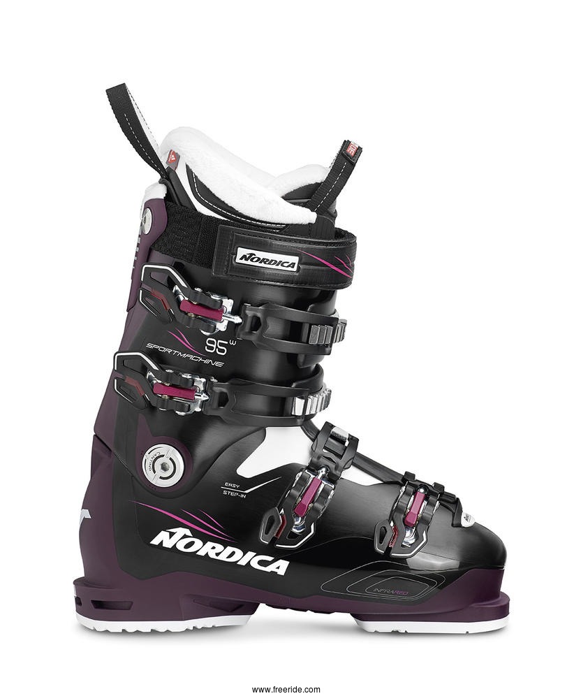 Topprestanda för kraftigare fötter och vader. Justerbara spännen som enkelt ökar omkretsen runt vaden. Weather Shield håller foten torr och varm, gummiblandning i yttersulan för bra grepp. Mjuk plast i öppningen på skalet, vilket gör pjäxan mycket lätt att ta av och på. Med Sportmachine 95 W kan man åka hårt hela dagen utan att få ont i fötterna. Lästbredd 104 mm