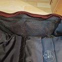 Det är en sjukt slitstark väska, min börjar få några skavanker efter långt användande, men ingenting som är annat än kostmetiskt. Den är också täckt i något slags gummiaktigt material på ovansidan, så jag har aldrig haft några problem med att det vätt igenom ens när jag stått och väntat på buss i hällregn. I form av fack finns inte så mycket (väskan ska ju gå att rulla ihop bra), men två små meshfickor på sidorna har de lyckats klämma in i alla fall. I den ena av dem ligger också, på ren goodwill från Douchebags, två rejäla gummiband för att hålla upp stoppersarna på ett par skidor.