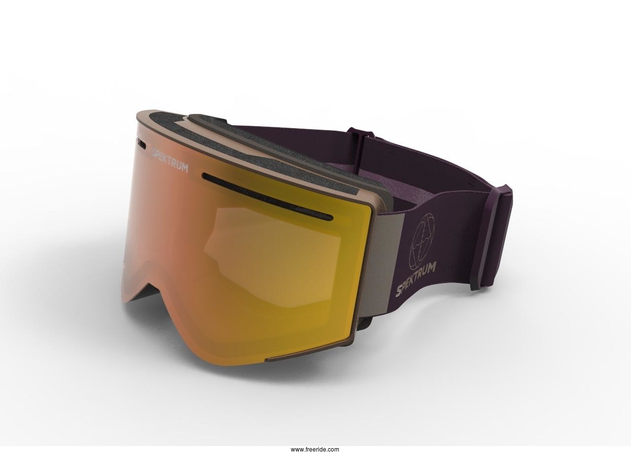 Lätt, följsam och hållbar ram tillverkad i miljövänlig bio-baserad polymer (ricin), Hårdplastdelar tillverkade av förnybara material (ricin), Högkvalitetslins från Carl Zeiss Vision med 100% UV skydd (UV400), Matt finish, Tri-density face foam för perfekt passform, Kompatibel med de flesta hjälmar, REVO reflekterande behandling på linsen, Air-flow ventilationssystem, Anti-im behandling, Anti-slip silikonprint på insidan bandet, Hållbart band i återvunnen polyester med custom artwork, Spektrum logo på linsen, Extra lins med hög kontrast inkluderad, Förvaringspåse i microfiber inkluderad