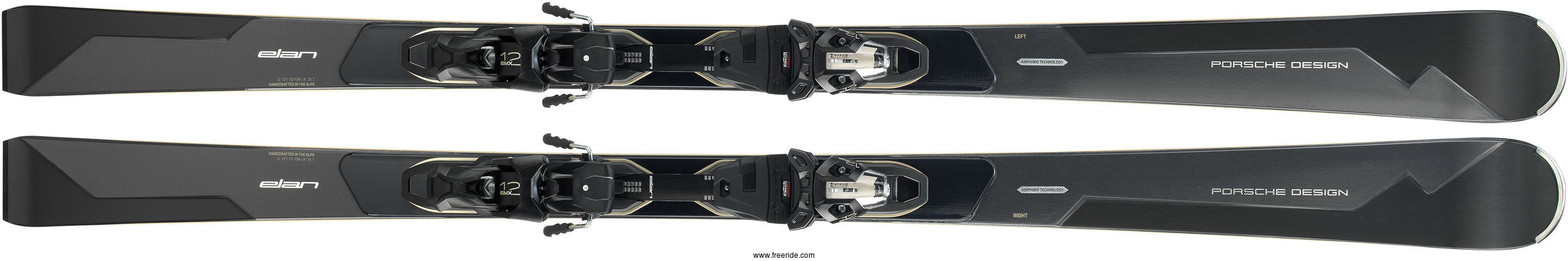 Made for the expert skier who likes to go fast on the highway and the slopes, Porsche Design meets Elan Black Edition. The collaborative ski design is a piste powerhouse and sure to turn heads on the slopes and beyond. Engineered with the highest level of technology and premium materials, this sleek machine will melt the ice under your boots and devour any slope in sight. The Porsche Design Elan Amphibio is the ultimate ride made with Elan's award-winning technology and finished with top-shelf style inspired by Porsche Design. Ready to take on any part of the mountain in perfect form with Amphibio Truline Technology, the Porsche Design Elan Amphibio is engineered to be more stable than a racing ski and easier to handle than a backside ski. Exceeding expectations when two legendary brands come to together on innovation and design.