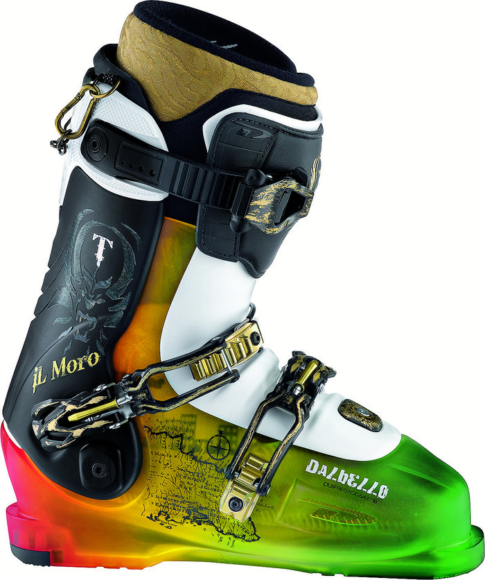 Dalbello IL MORO T är Tanner Halls pro model. Tre-delad pjäxa i rastadesign, intuition innersko för bra värme, vikt och komfort. Utbytbara tungor, sulor och spoilers för den som vill trimma. Len och go mot ömma benhinnor.