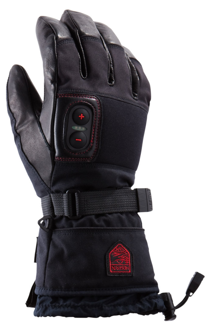 Nytänkande skidhandske med värmeslingor i fingrarna för kalla vinterdagar för skidåkare som lätt fryser om händerna. Temperaturen justeras i tre lägen beroende på väder. Längre modell med snölås för dig som mycket offpist och behöver en stryktålig, vind- och vattentät följeslagare.