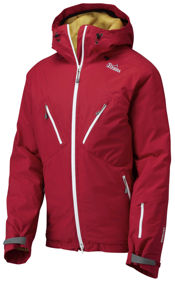 Tierras Laub-jacket för damer med primaloftfyllning ser till att hålla kylan utestängd. Vind- och vattentät, huva som rymmer en hjälm och med ventilationsöppngar under de förböjda armarna.