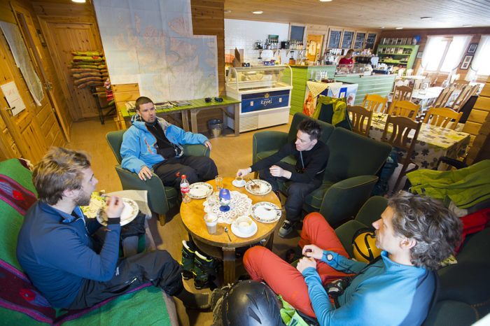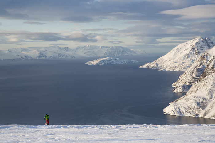 Och nu står vi här, en dryg timmes bilfärd nordväst om Alta, på en parkeringsplats i byn Langfjordbotn och det är en vackert vintrig februarimorgon. Mannen som ger oss ”några råd” är ett levande uppslagsverk vad gäller skidåkningen i området. Tore Karlstrøm, eller ”offpistbonden” som han kallas – eftersom hans egentliga sysselsättning är de trettiofem mjölkkor som står i hans lada – är utbildad lavininstruktör. Vintertid guidar han skidåkning och håller i skredkurser. Han åker så mycket skidor han kan och visar ofta omkring bland sina hemmaberg för de få utomstående som hittar hit.