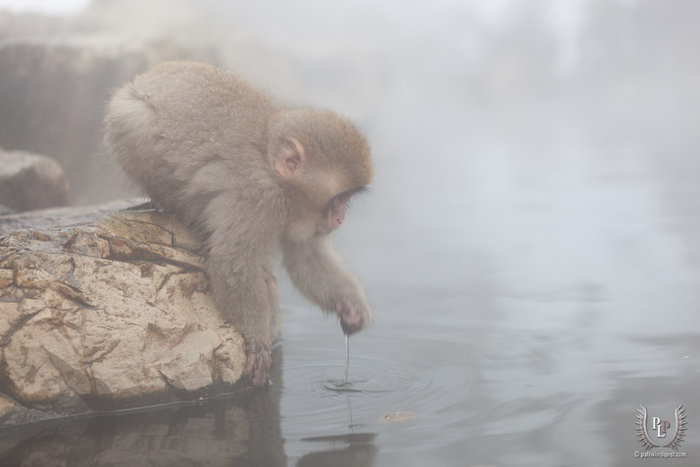 - Missa inte en eftermiddagstur till Yudanaka Onsen för att titta på snöaporna! Från parkeringen leder en smal stig genom en skog av ceder-träd som leder fram till den ravin där aporna samlas. I botten av ravinen forsar vatten i en bäck och på ena sidan strömmar vatten från de heta källorna ner i ett bad. Det ångar från badet där några av aporna värmer sig, till synes likgiltiga inför alla närgångna fotografer. Andra apor letar mat på marken medan några ungar leker och klänger i repen på den bro som går över bäcken. Hit kommer aporna på vintern för att värma sig och för att få mat.
