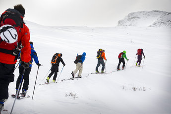 Torsdagen började med offpistguidning på berget Nuolja i Abisko. Uppdelade i olika grupper fick alla deltagare en exklusiv guidning på två timmar. Därefter blev det ner till after ski följt av föreläsning från vår kvinnliga internationella bergsguide Ulrika Asp. Ulrika berättade och visade bilder från hennes aktiva liv och arbete i Chamonix och hur hon nått dit hon är idag. Några av deltagarna fick också nöjet att följa med Ulrika på topptur fredag och lördag.