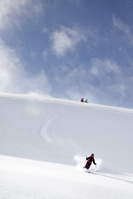 Söndagen bjöd liksom fredagen och lördagen på topptur, isklättring, foto och lavinkurs och det var fullbokat även den här dagen. Äventyraren och skidåkaren Fredrik ”frippe” Eriksson från Umeå, numer bosatt i Chamonix, föreläste om sina kommande äventyr och visade ett mycket inspirerande bildspel! Vädret var bra och det blev härlig skidåkning under söndagens toppturer också. Sammanfattningsvis så blev årets Purefreeridecamp en grym helg med många goda vänner och härliga skidminnen.