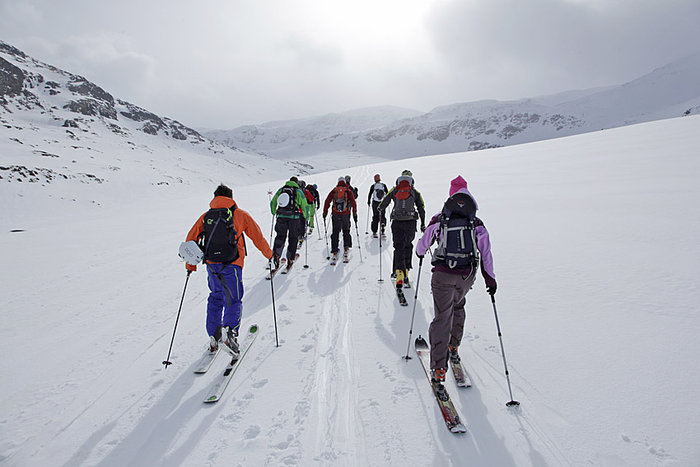 Klockan är ett och många har fått i sig sin lunch och är ombytta och klara för att åka Linbanan upp på fjället Nuolja. Där väntar en offpistvisning av STF Abiskos skidpatrull. Linbanan är öppen en timme längre än vanligt så att alla deltagare hinner åka några åk och får röra på sig efter sin resa. Väl nere efter offpistvisningen är testcentret öppet och där blir det full fart från start. Det är många deltagare som vill låna och testa utrustning.