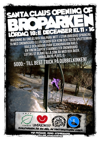 I centrala Umeå har nyligen en railpark satts upp där skid- och snowboardåkare serveras en mängd olika rails. Nu på lördag är det dags för en officiell invigning.