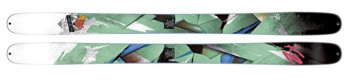 En skida ska inte innehålla mer än tre block i olika färger. Tjusig grön/turkos färg som kommer se urmullig ut mot snön och K2-loggan ser lagom 80 ut och passar bra in med hela designen.