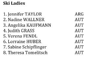 På damsidan var kvalitén på åkningen om möjligt än mer ojämn. Det tappades skidor och stavar, och en del av åken var helt bedrövliga, rent ut sagt. De tre åkarna som stod ut från mängden och levererade fina åk med bra kontroll var Jennifer Taylor som tog hem segern, samt Nadine Wallner och Angelika Kaufmann på andra- respektive tredjeplats.