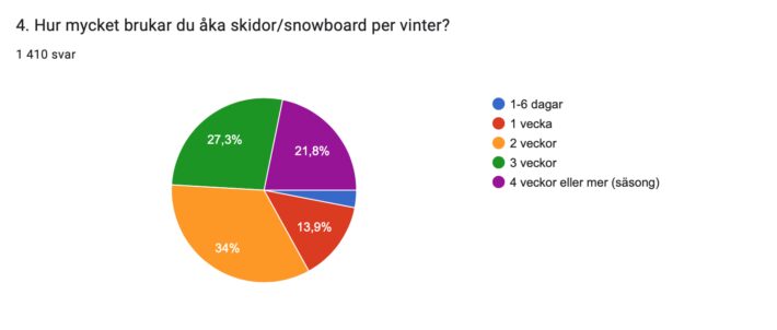 Totalt har 1417 personer svarat. Mer än hälften av svarsdeltagarna är mellan 45 och 64 år och ungefär 30 procent av svaren kommer från målgruppen som är mellan 25 och 44. Nästan 70 procent av alla som svarat på enkäten har barn och dessutom åker de flesta som svarat relativt mycket skidor, mellan två till tre veckor per år.