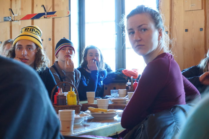 Klockan är nästan sex på kvällen när gänget är nere vid badtunnorna på Hemavans Wärdshus. Dagens bravader avhandlas och stela muskler mjukas upp i det varma vattnet. De röda ansiktena från en solig dag på fjället lyser som signalljus i aprilkvällen. Den gemensamma slutsatsen är att morgondagen behöver bjuda på bättre snö, annars kommer tävlingsångesten bli svår på riktigt.