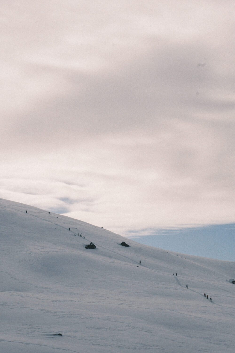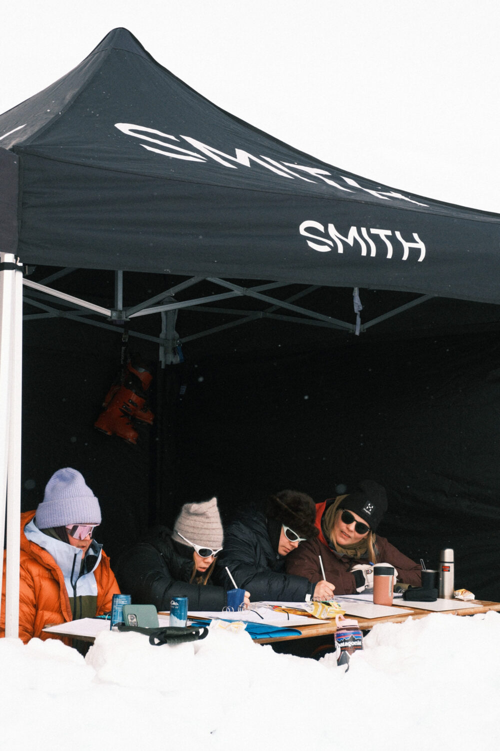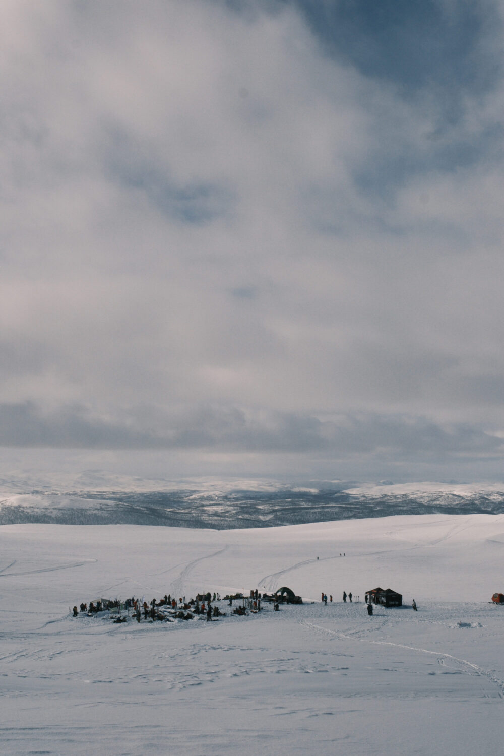 Försöken för att få till en tävling dag 3 blir många och långt gångna. Prognosen visar stark vind och eventuell nederbörd – men det är en sol där bakom molnet i symbolerna i SMHI:s tabell. Kombinerat med ett riktigt peppat gäng deltagare som säger sig vara villiga att lida lite för att få åka ett andra åk gör att alla alternativ utforskas. Planen är att köra åkare i pistmaskin med hytt upp till målområdet i startordning, ha ett kortare åk och låta domarna sitta inne i samma maskin. När Johan af Ekenstam kommer ned från sin morgontur upp på fjället konstateras att det inte kommer funka. Det drevar såpass att marken inte riktigt syns. Förfrysningsrisken är extrem i den hårda vinden och Johan höll dessutom knappt på att hitta ned från fjället.