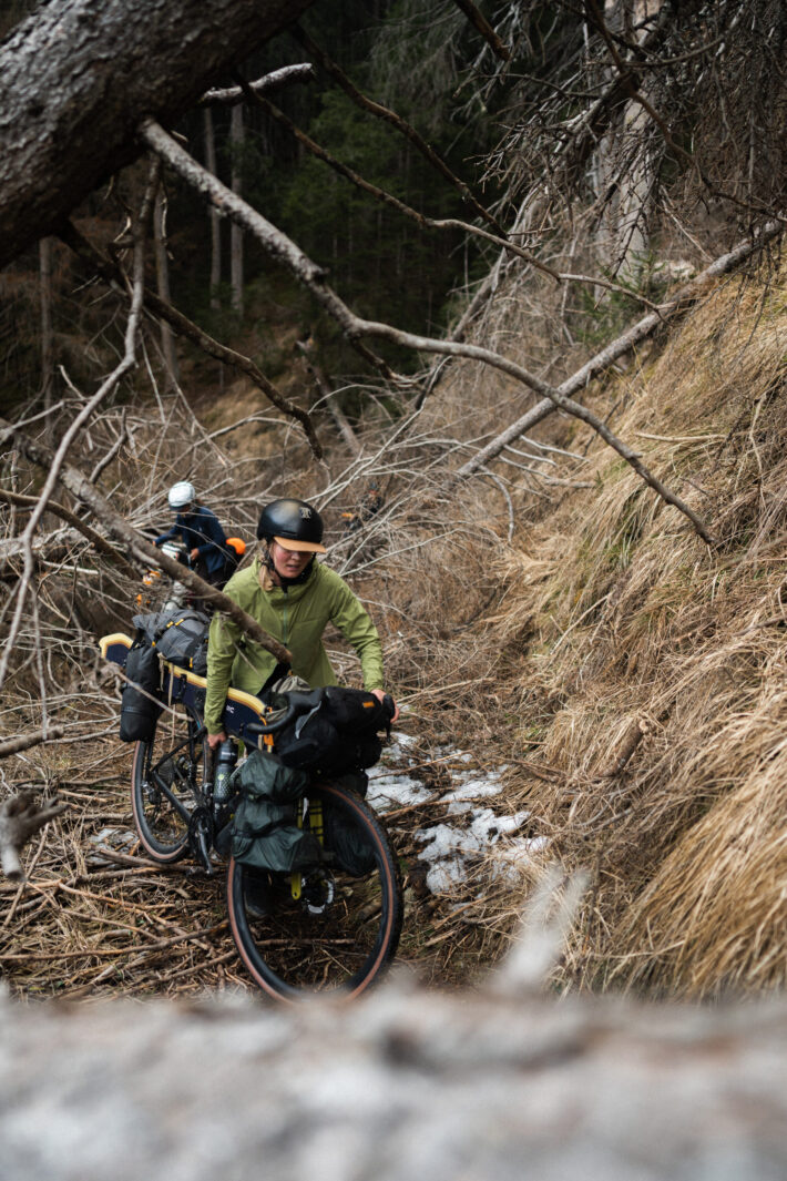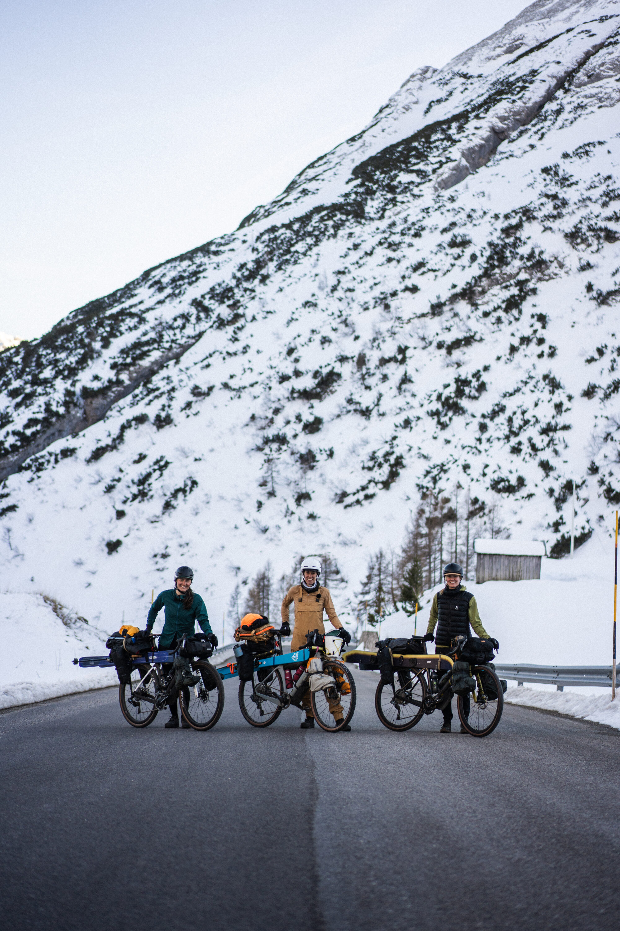 Det var slutet av februari i Innsbruck. Henna satt vid sitt skrivbord och kollade kartan för att se vilka resmål som låg i närheten, resmål med fina skidmöjligheter som lätt kunde nås med cykel. Vintern i de österrikiska alperna hade varit den värsta i mannaminne. Den vanliga oändliga nysnön hade ersatts av gräs och lera. Normalt, vid den här tiden på året, är vi för nupptagna med att njuta av puderdagarna i de snöiga bergen för att ens hinna tänka på att slösa bort denna dyrbara tid på att cykla. I år var annorlunda; nu var dags att varva ner och äntligen se om det kunde vara roligt att kombinera två sporter, bikepacking och skid- och snowboardåkning.