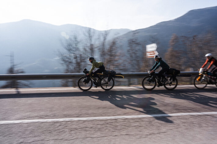 Sami försäkrade henne att hon kommer att vänja sig vid det när vi når Dolomiterna. Dolomiterna, ett resmål med ikoniska toppiga berg med skarpa sidor som står enormt höga som bakgrund oavsett om det är sommar eller vinter. Och viktigast av allt, bara ett par hundra kilometer bort från Innsbruck, vilket gör det nåbart med cykel. Frågan var bara om vår plan med en 5-dagars cykel- och 4-dagarsskidresa från Innsbruck till Lago di Garda verkligen var realistisk utan att vara endast en sufferfest?