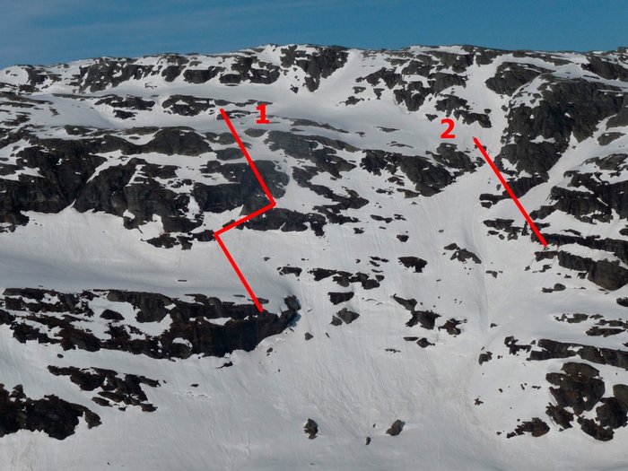 Det troliga tävlingsfacet under världstouren, ”tredjerenna”, 370 m höjdmeter, 35-55 graders lutning.