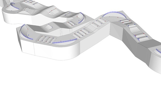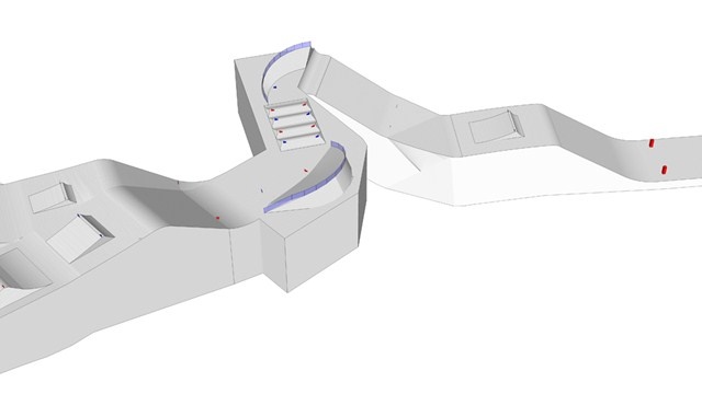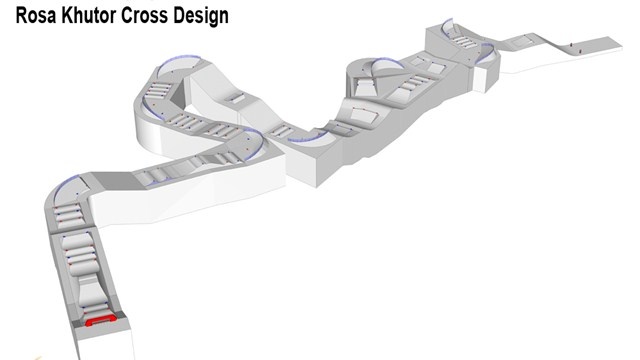 På ett ställe delar banan sig, för att ge möjlighet till mer grenspecifika hinder. Skicrossdelen består där av ett step-up hopp, en bakvänd velodromkurva och en stor kicker, medan snowboarddelen har ett antal mindre rollers och sedan ett stor kicker innan banorna går samman igen.