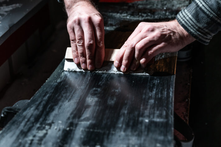 Borsta så att det bildas ett fint pulver av valla. Gör det tills hela belaget är borstat och sen lite till, borsten ska jobba lagom intensivt i 5-10 minuter. Proffsen jobbar med tre olika borstar. Vissa med en roterande borste på skruvdragare.