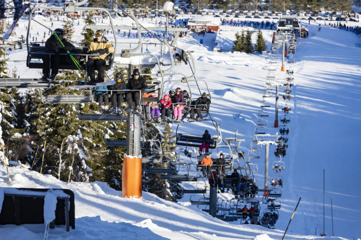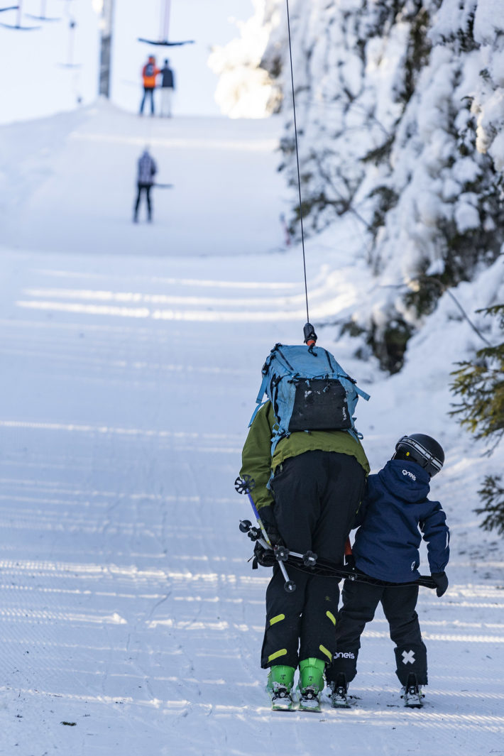 Kön är obefintlig och vi glider snabbt fram och tar plats i en av stolarna i Solbergsliften. Här får man verkligen valuta för liftkortspengarna. Den går långsamt. Å ena sidan är det mysigt att få tid att prata med familjen, å andra sidan är det otroligt irriterande att se de båda ankarliftarna nedanför att ta höjdmeter så mycket fortare.