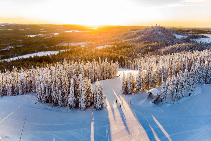Leo och Meja styr skidspetsarna mot den blåa pisten Älgkroken. Jag och Linn stakar ifatt dem. Efter pistens första brant öppnas vyn upp söderut. Det är vackert. Snön gnistrar i träden och en närliggande kulle reser sig upp mot himlen och ger både en höjd och ett djup i landskapet som är svårt att få nog av.