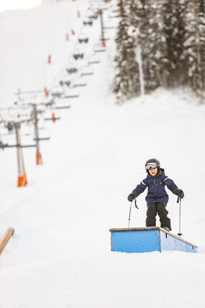 Denna gång är det dags för lite mer lutning på pisten. Leo tar fart och glider över krönet och ner i pisten Rödingen. Den löper parallellt med Solbergets stollift. Halvvägs ner finns det ett vägval. Antingen fortsätta lägga svängar bredvid stolliften hela vägen ner till lifthuset, eller ta en vänstersväng in i parkområdet. Leo väljer det senare. Efter att ha glidit under stolliften och fortsatt ytterligare några tiotals meter befinner vi oss i toppen av parken, som på pistkartan heter Folkparken. Framför oss har vi massa hopp och rails, både stora, små, långa och korta. Efter några mindre lyckade hopp för både mig och Leo börjar vi mot slutet av dagen få lite feeling. Under våra totalt fyra skiddagar i Säfsen blir det många fler besök i Folkparken.