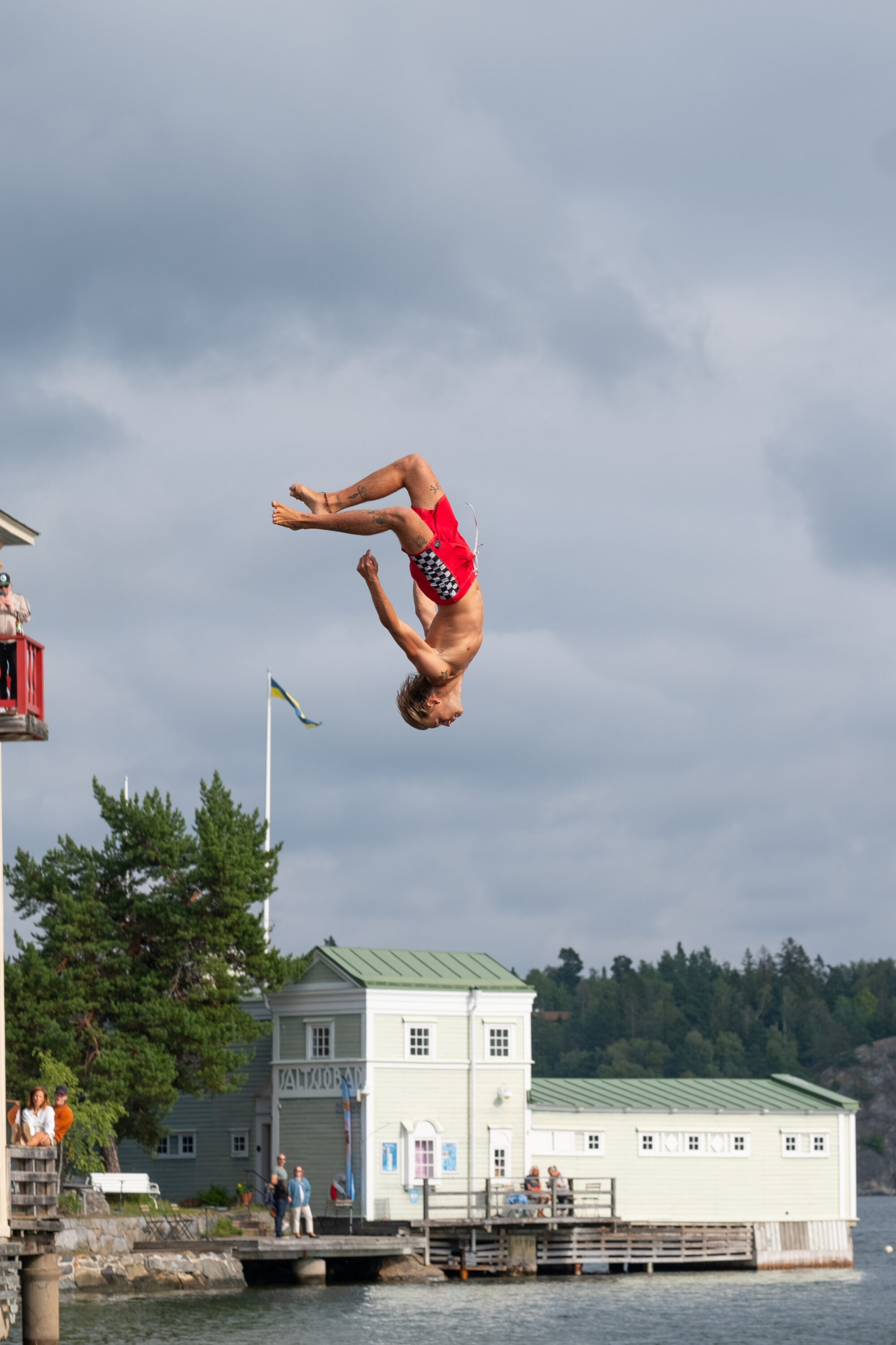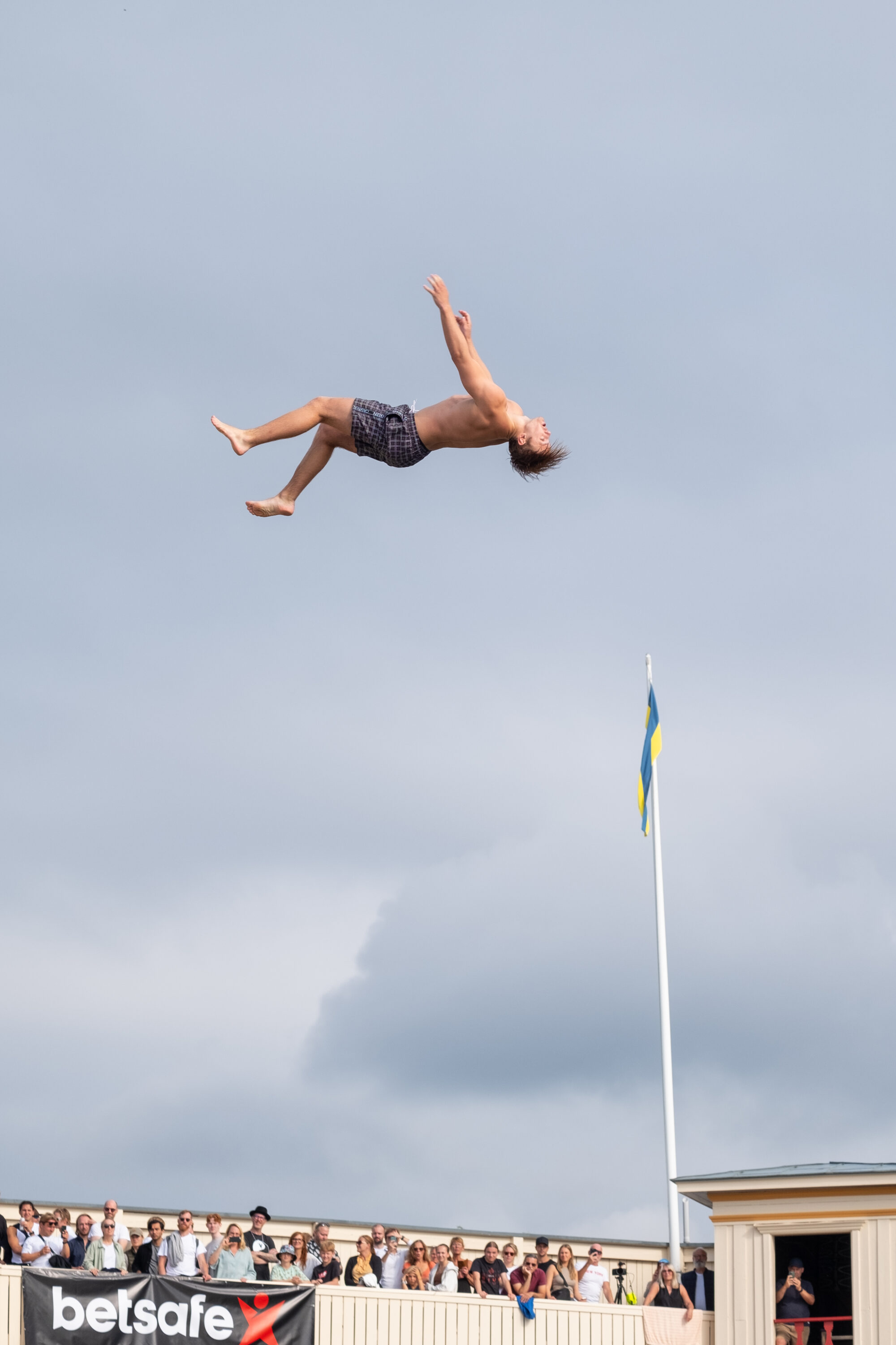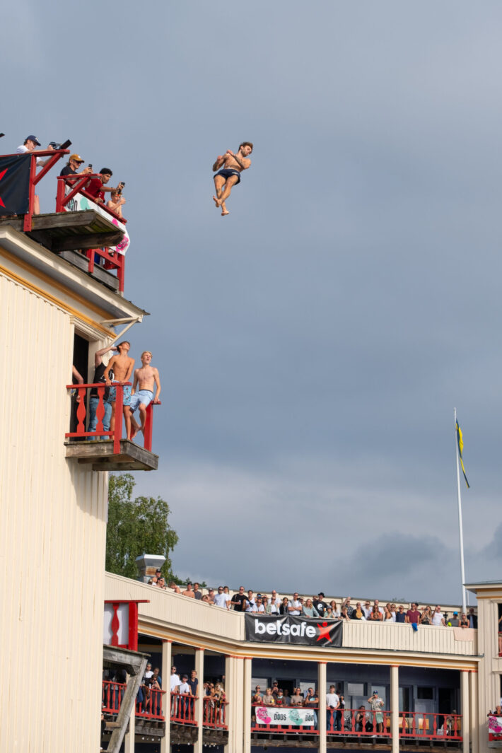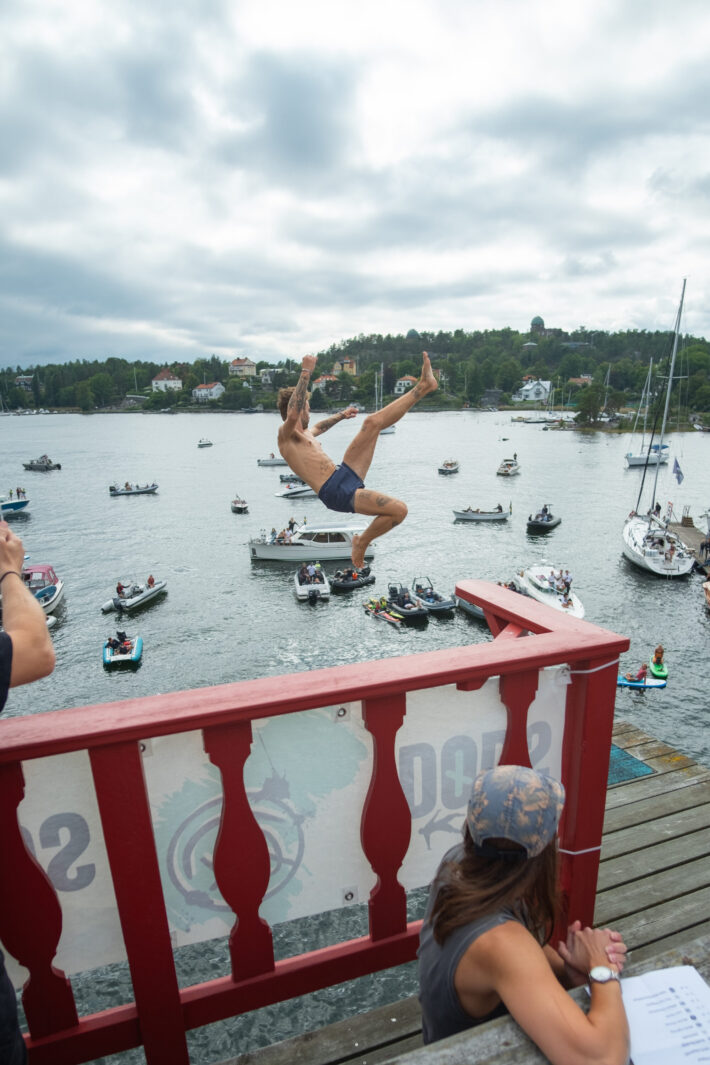 Årets mest galna event genomfördes i helgen i Saltsjöbaden då publiken fick se våghalsar från hela världen slänga sig ut för den 12 meter höga platån för att landa i vad som ser ut att vara ett magplask.