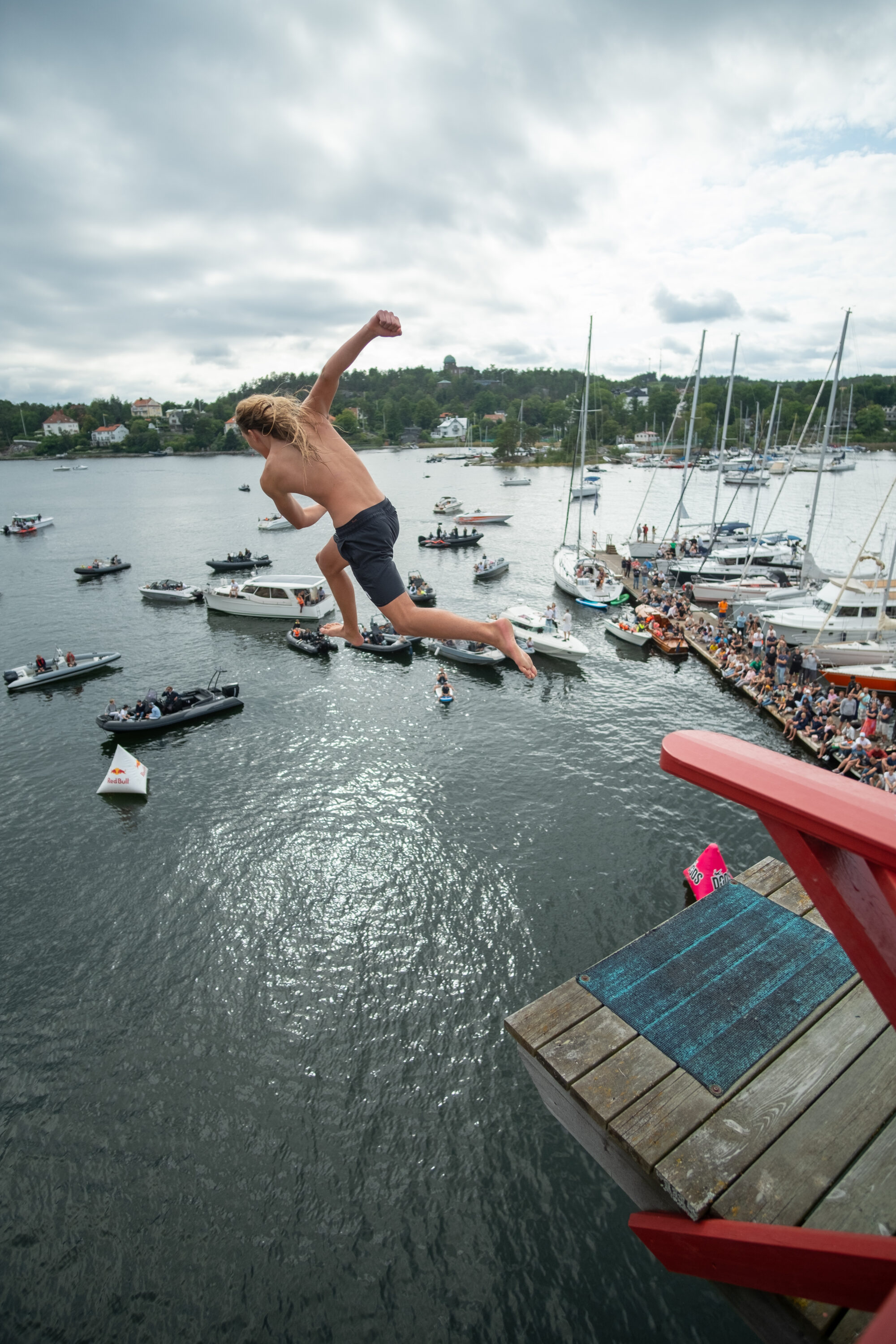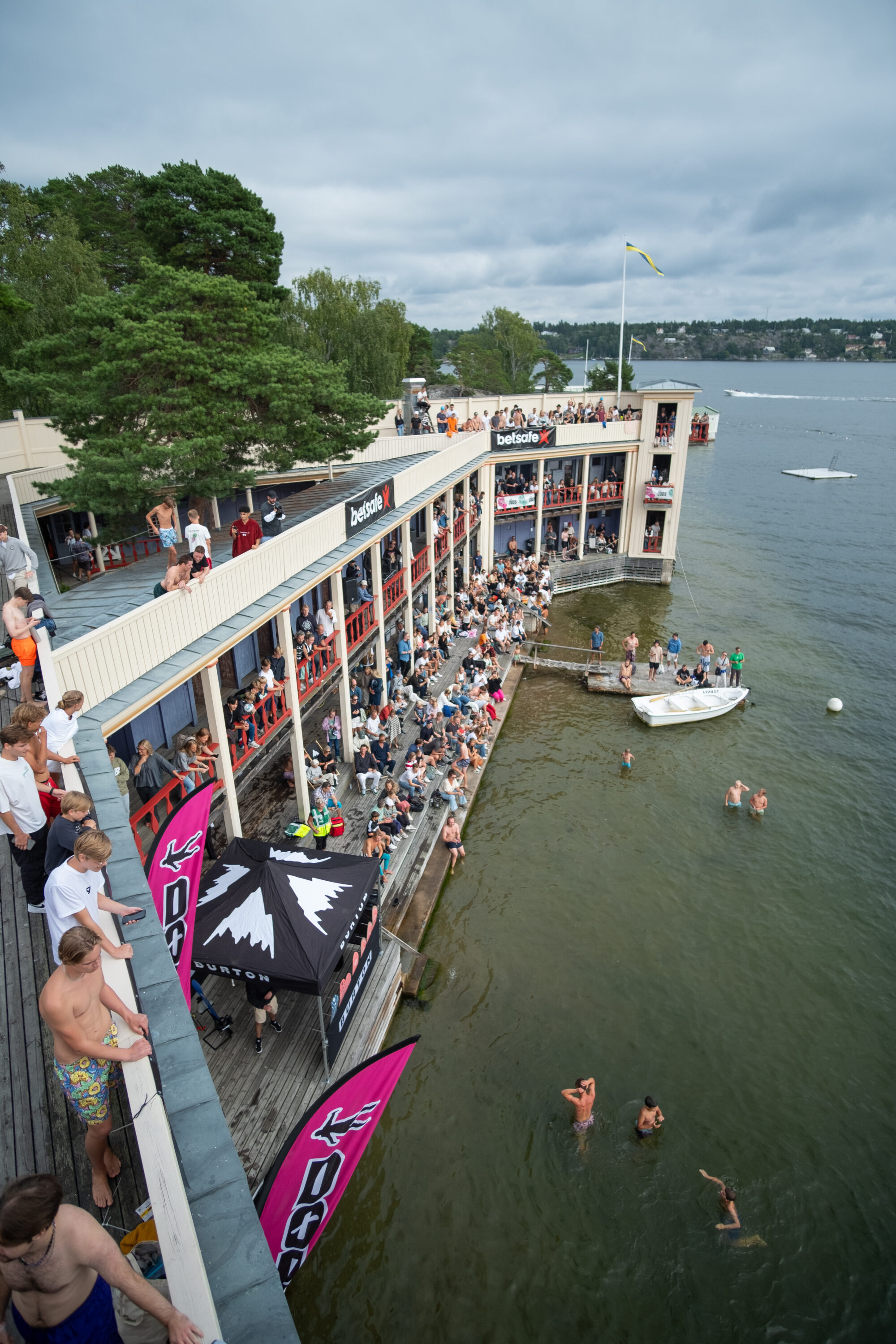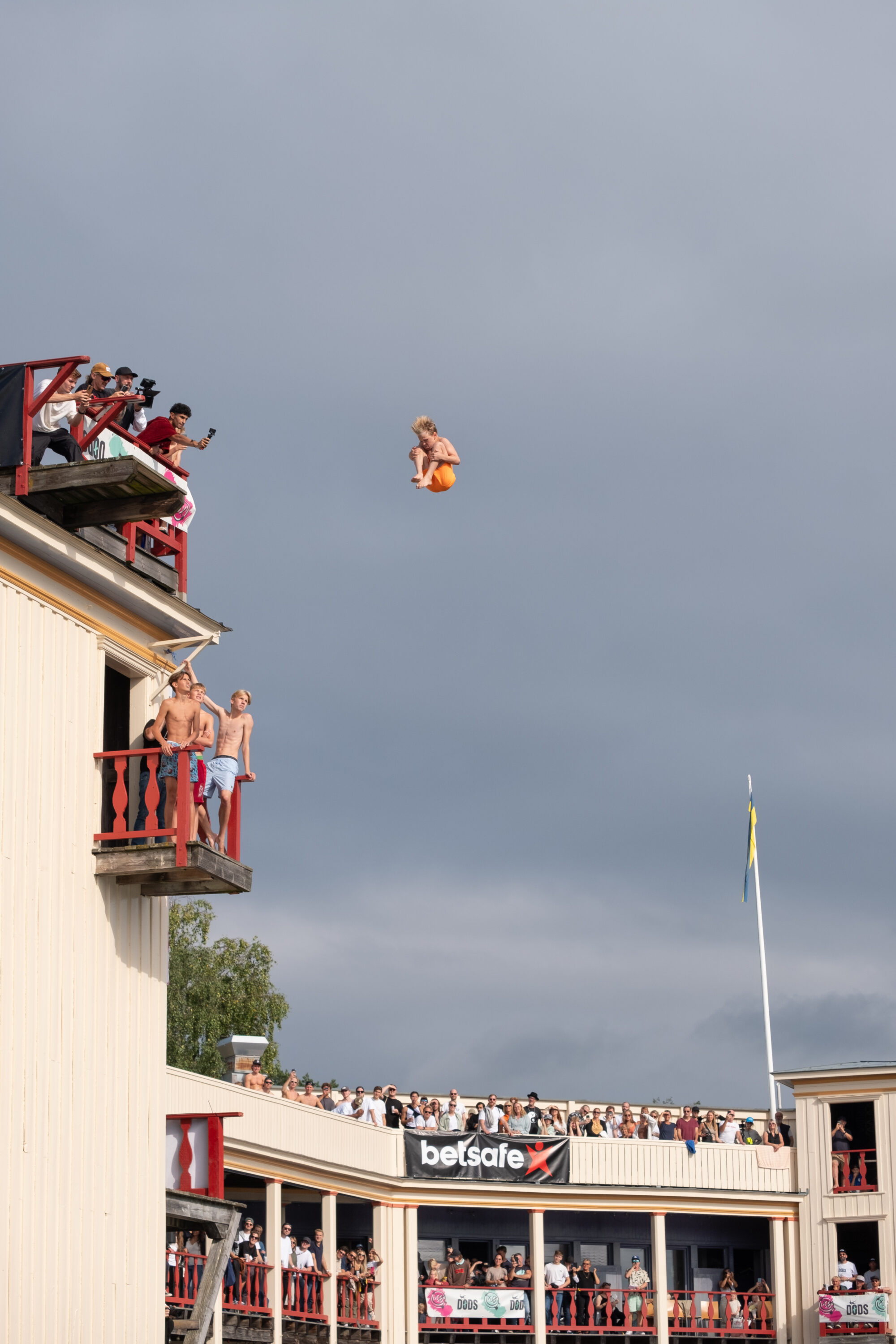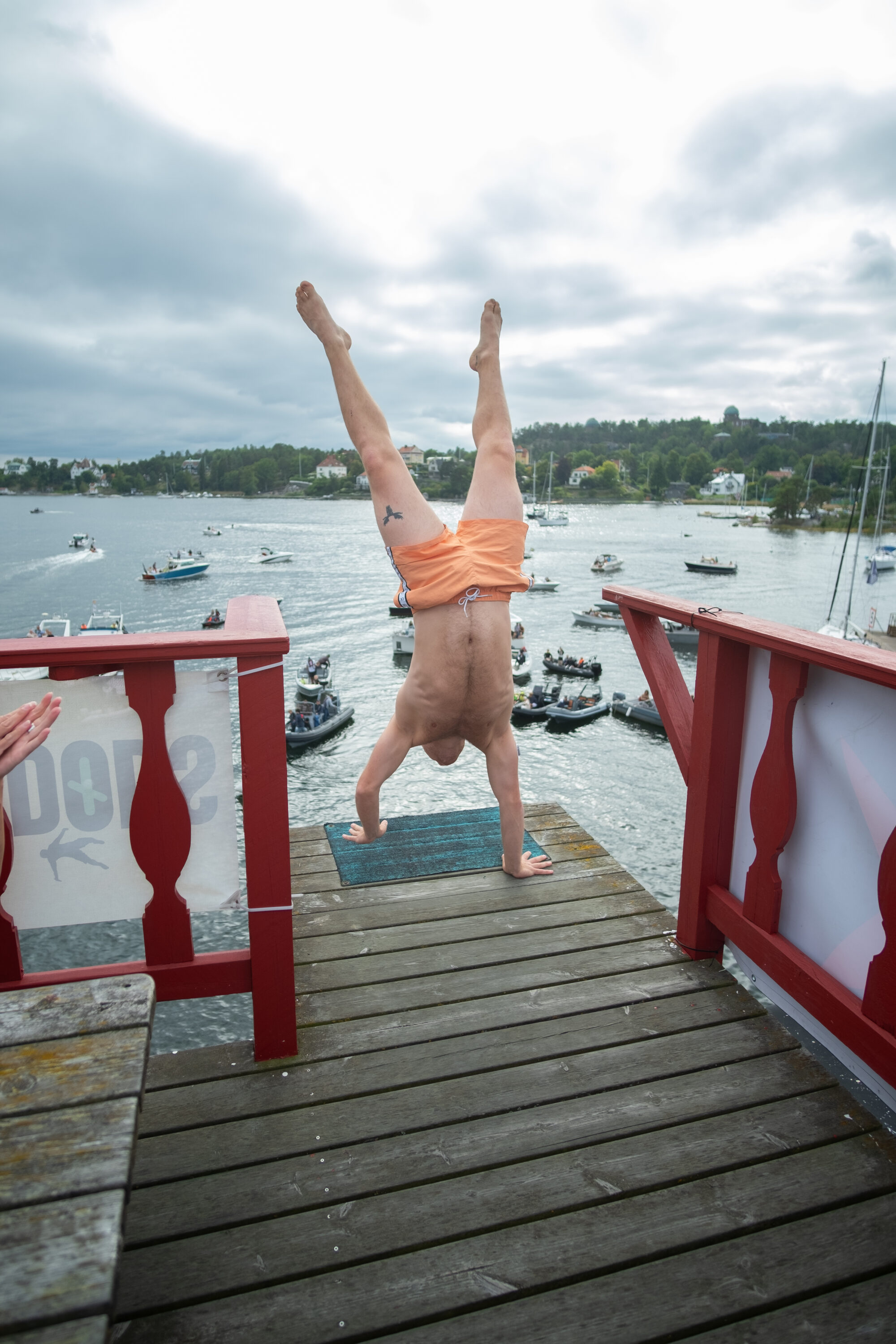 Årets mest galna event genomfördes i helgen i Saltsjöbaden då publiken fick se våghalsar från hela världen slänga sig ut för den 12 meter höga platån för att landa i vad som ser ut att vara ett magplask.