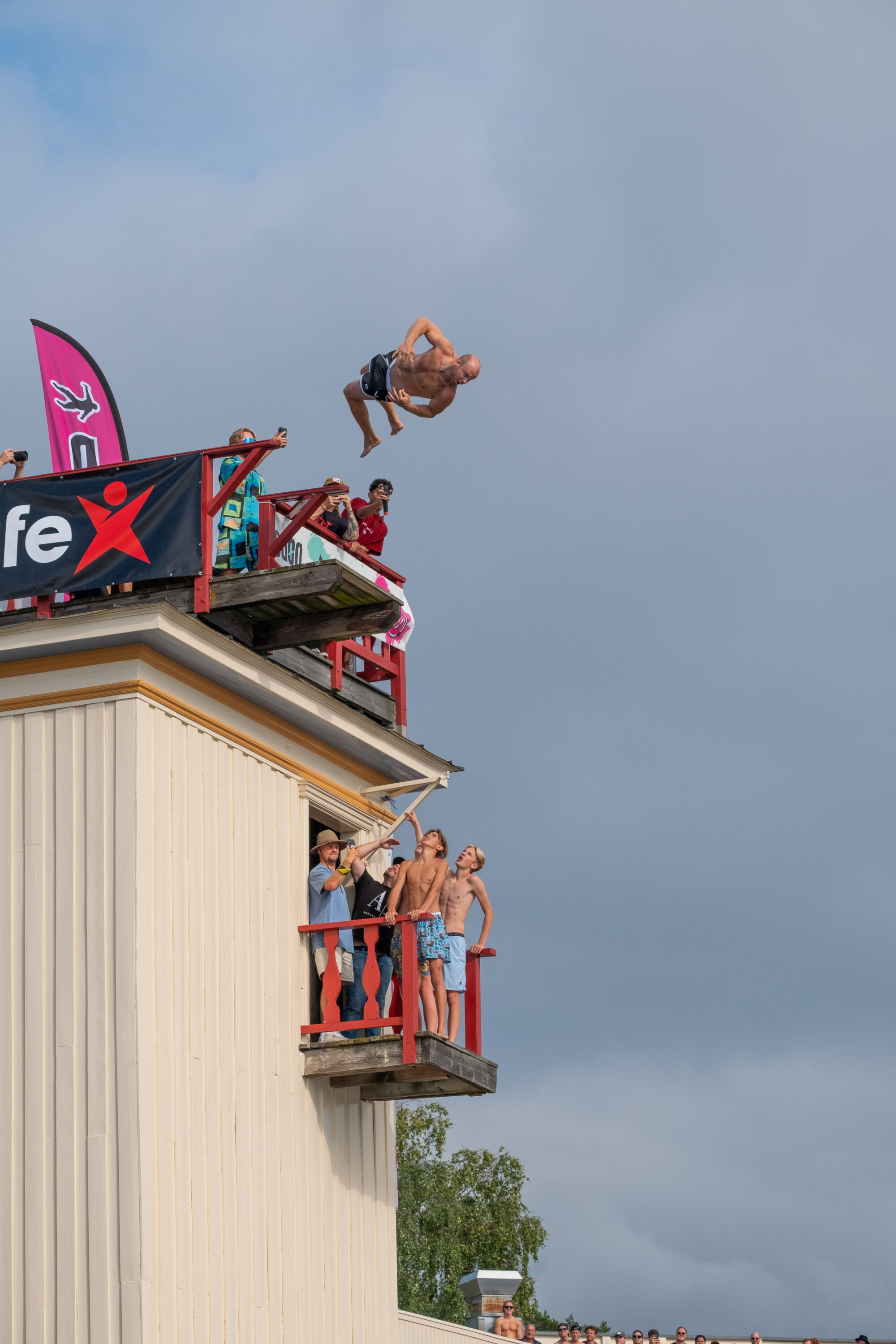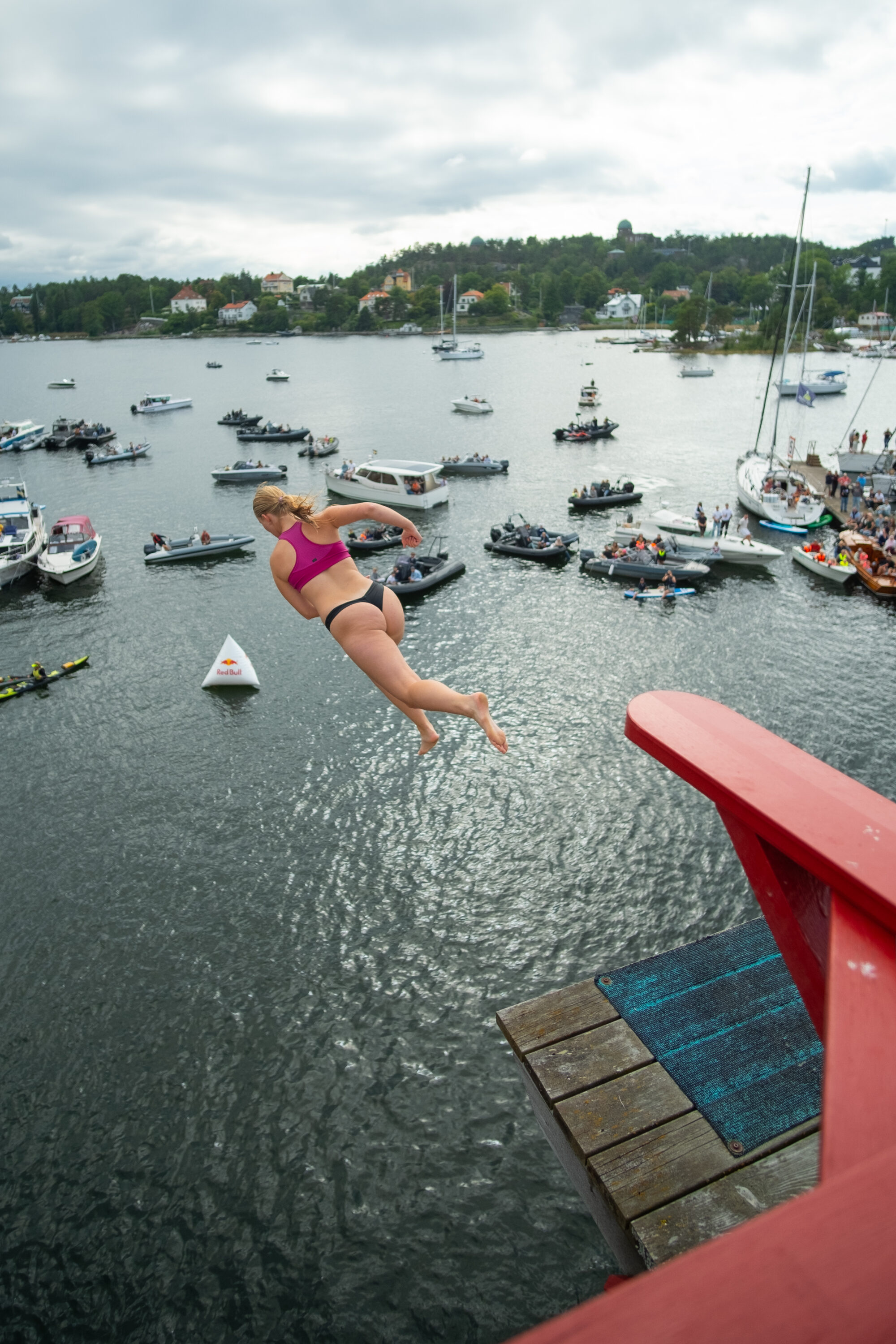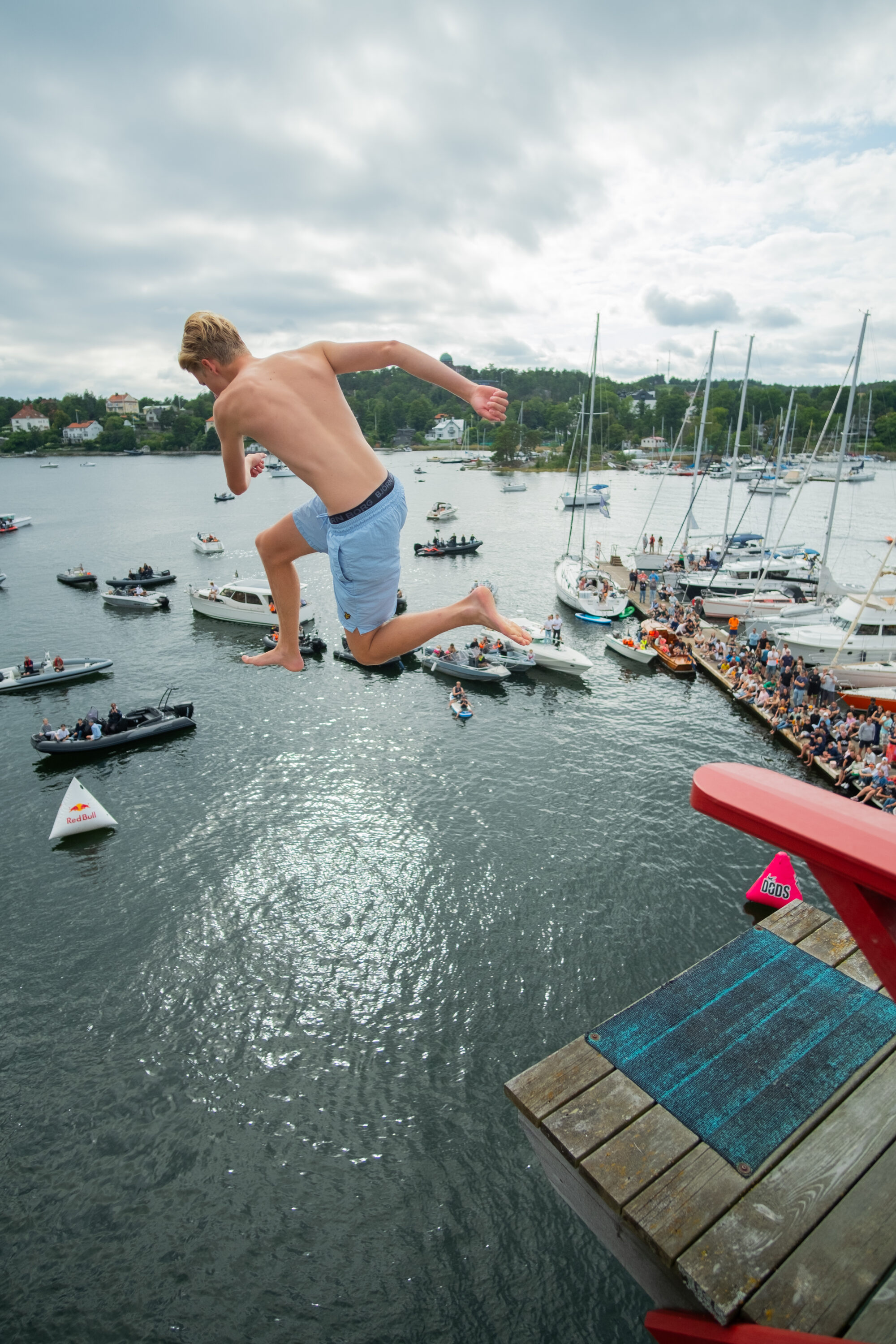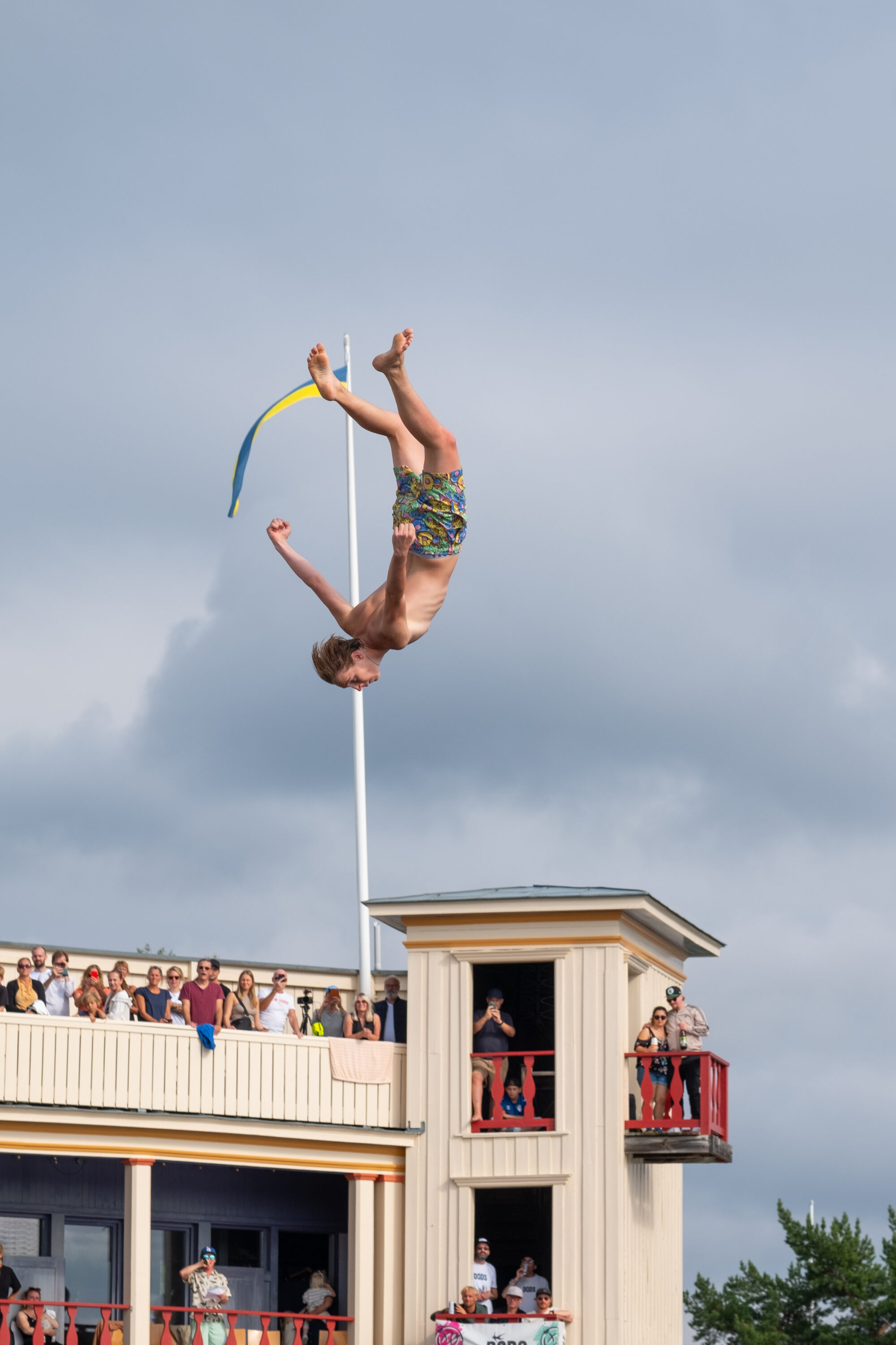 Årets mest galna event genomfördes i helgen i Saltsjöbaden då publiken fick se våghalsar från hela världen slänga sig ut för den 12 meter höga platån för att landa i vad som ser ut att vara ett magplask.