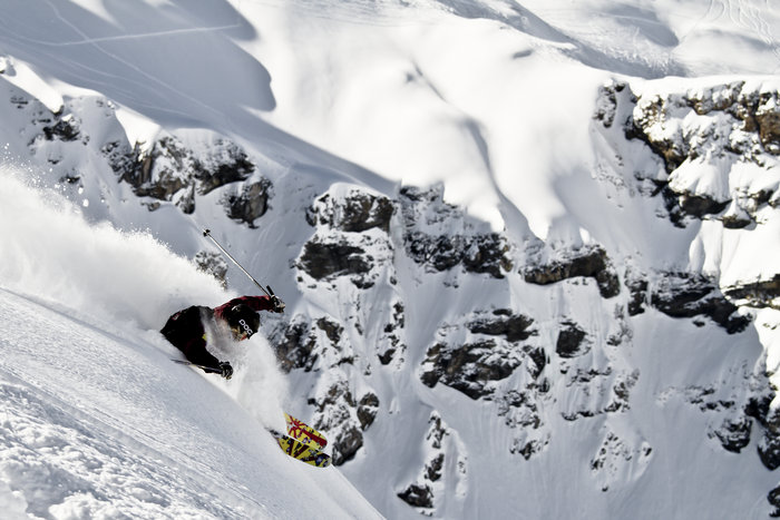 Oskar Holmblad öser nerför Steinberg, Engelberg.
