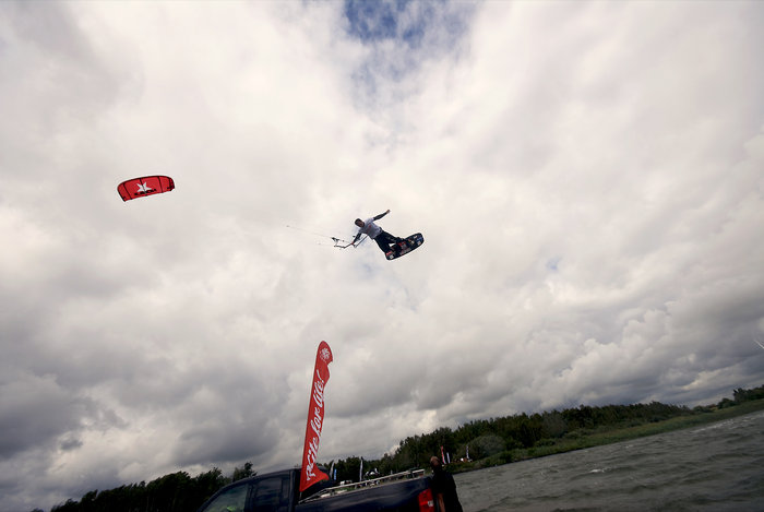 Efter Courseracing blev det en fotosession med Monster Energy´s truck ute i vattnet, som ett föremål att hoppa över. Under denna session visade Mike Blomvall hur det skulle gå till. Han hoppade högre, snurrade mer och körde med bättre stil än alla andra. Mike som förövrigt är äldst på PKRA med sina 29 år tog för en vecka sedan en meriterande seger på KPWT touren i Tarifa mot bra motstånd.