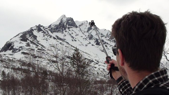 Bilresan upp till Ørsta gick utan några problem. På vägen upp genom Breidalen i Strynområdet fick vi syn på en fantastisk bergssida med flera fina rännor. Vägen gick rakt in i en tunnel på bergssidan och det var omöjligt att inte fundera på olika åk där ju närmare vi kom. Vi parkerade bilen och började reka. Jag tog ett antal foton och Erik hade en karta där det syntes att det var lätt att ta sig upp på baksidan av fjället.