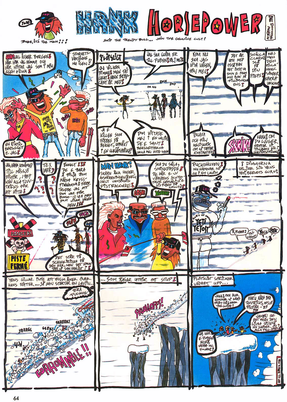 Hank Horsepower är den nostalgiska skidserien från 80-talet av tecknaren Björn Gevert som nu återpubliceras på Freeride.