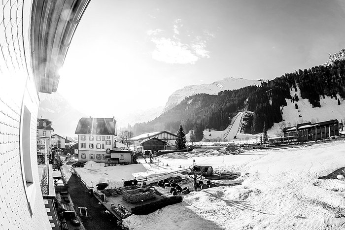Väl tillbaka på hotellet njuter jag av att nyduschad, med en kall öl sitta i hotellbaren med värkande ben gå igenom dagens (tyvärr inte alltför omfattande) bildfångst. Som jag redan hört talas om är det uppenbart hur annorlunda Engelberg är mot min hemma-arena St. Anton. Här finns inga ”spritbummare” så långt ögat kan nå. Tvärtom kanske Engelberg är den mest ABS-täta skidorten jag varit i. Alla ser otroligt fräscha, solbrända och pigga ut, och visst är det precis som i St. Anton otroligt mycket svenskar i byn, men det är definitivt inte samma skrålande veckoslutsfestande klientel som har tagit sig hit. Jag börjar smida planer på hur jag ska ta mig ur mina studier en vinter och få spendera mer än bara en helg på denna plats full av möjligheter att ha så roligt på.
