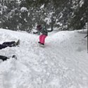 Vi var tre barnfamiljer som besökte Gaustablikk v7 2018. Vi lyckades pricka in ett ordentligt snöfall så första dagen låg det säkert 20-30 cm nysnö i och utanför backarna.