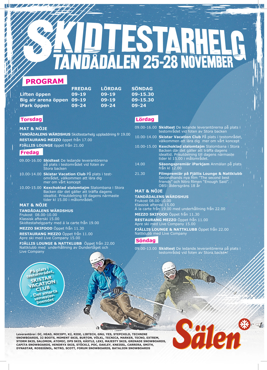 Skidtestarhelgen i Tandådalen är ett säkert tecken på att ännu en skidsäsong är här. I helgen är det dags för årets testhelg och förutom att testa skidor så finns det även möjlighet att kolla på skid- och snowboardfilm och såklart träffa en massa folk.