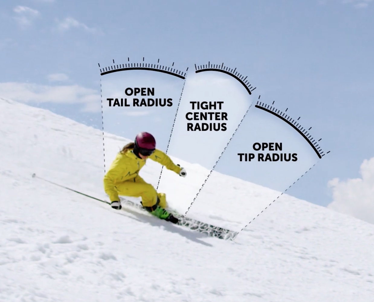 Völkls marknadsavdelning lyfter gärna fram sin 3D-radius när de pratar om flera av sina skidmodeller, så även Mantra M6. På testlängden 177 cm innebär detta att tillverkaren anger tre olika radier på skidan (R1) 30 m, (R2) 18 m och (R3) 24 m. Vad gäller konstruktionen är radien tightare i mitten på skidan, och därefter avtar den och är ”mer öppen” eller större. Tanken är att skidan ska kunna prestera i både korta och långa svängar.