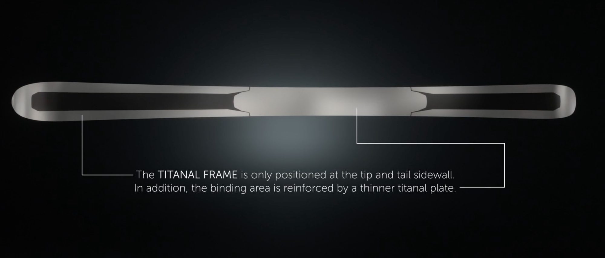 Nya Mantra M6 har en träkärna av poppel och bok i sandwich-konstruktion, samt lite tip- och tailrocker. Skidan är metallförstärkt med ”Tailored Titanal Frame”, vilket innebär att aluminiumlegeringen Titanal ligger längst sidorna fram och bak, samt i ett tunt heltäckande lager under foten där bindningen sitter. Ett sätt att konstruera på som vi även ser hos andra tillverkare, om än med smärre skillnader.