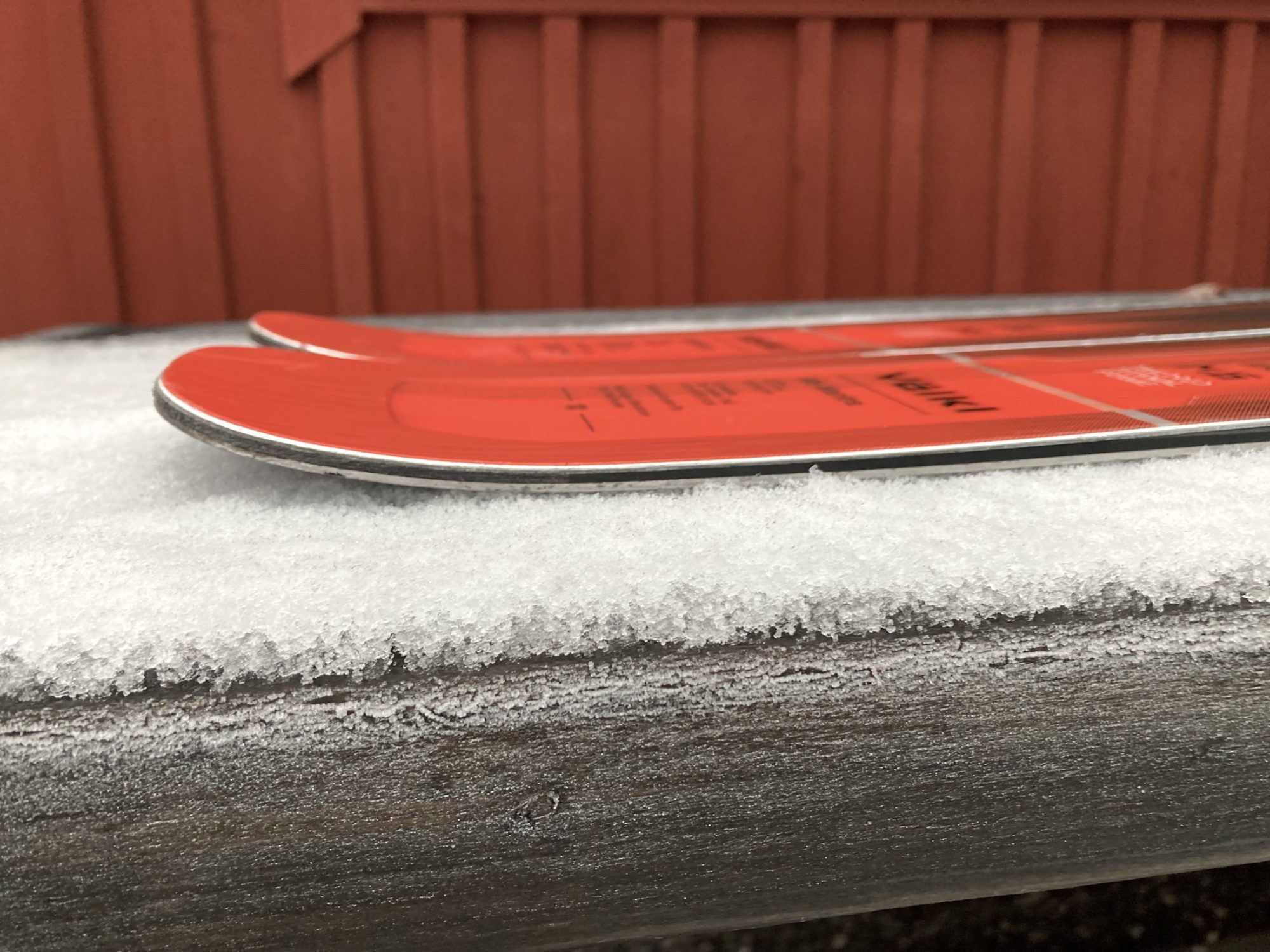 Den minimala tip- och tailrockern på skidan gör att det mesta av kanten på skidan ligger i backen när man åker på skär. Testlängden 177 cm känns därför jämfört med en skida med mer rocker som ”lång”. Detta tycker jag ger bättre åkegenskaper till skidan, men det som får stryka på foten är nämnda egenskaper i lösare före och mer lekfull åkning.