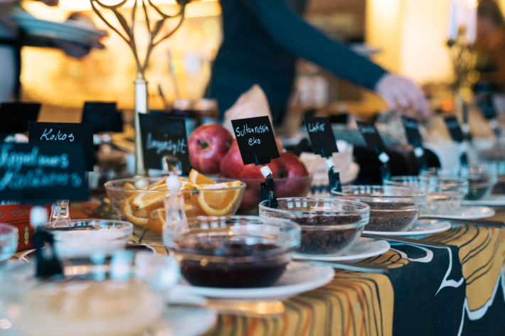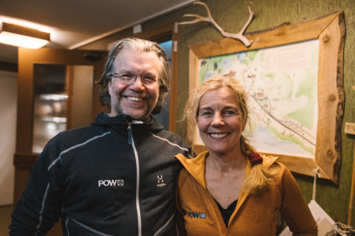 Desto skönare är det att komma in i den varma entrén på Kolåsens Fjällhotell där det luktar värmeljus och hemtrevligt. Anna och Mickesom drivit hotellet sedan 2003 hälsar oss välkomna med kaffe och kärleksmums i matsalen, det är ju ändå Alla hjärtans dag skiner Anna upp och ger oss en introduktion i allt från hotellets anrika historia till den hållbarhetsprofil de har idag. Hotellets mat lagas av Micke och råvarorna kommer från egen odling, egna djur och från noggrant utvalda lokala producenter. Jag blir verkligen berörd av Anna och Mickes genuina driv för hållbarhet och jag känner mig priviligerad att få vara en av deras gäster. Samtidigt dånar vinden utanför matsalens fönster och plötsligt måste Micke springa ut för att rädda några sopkärl som är på väg tvärs över hockeyrinken.