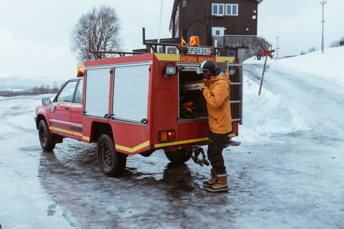– Vem vill köra brandbilen, frågar Micke när vi är på väg från frukosten.