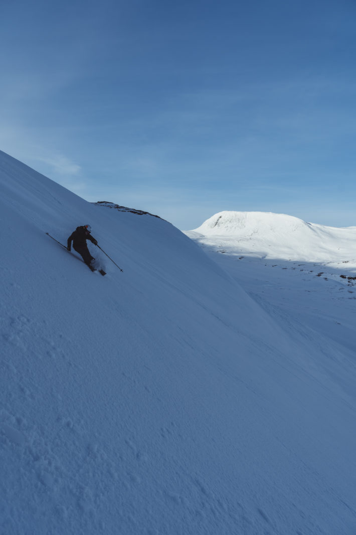 Vinden är tillbaka och gårdagens pepp vid frukosten är inte lika närvarande. Jonte delar med sig av dagens planer, jag hör “skogsåkning” och “puderrundan”. Det låter inte helt fel ändå, kanske lite mjukare snö utan skare tänker jag och tar sista tuggan av dagens första macka.