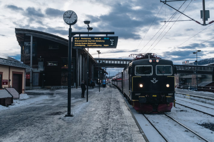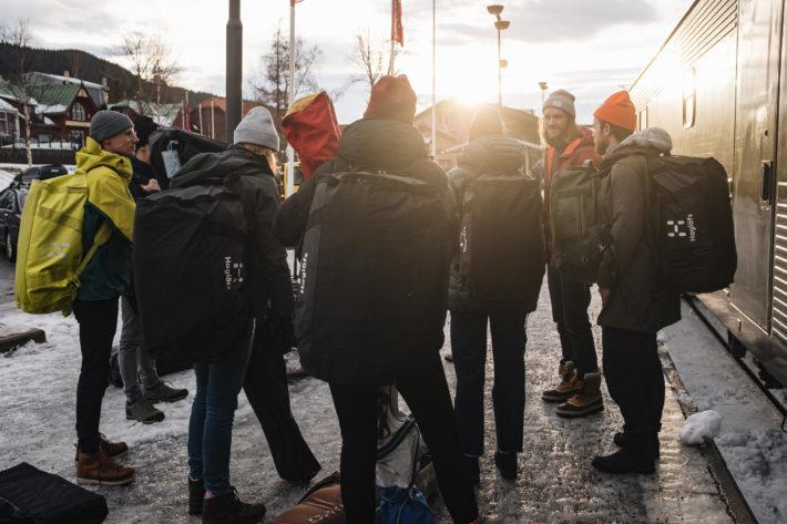 Jag har fått förmånen att följa med på ett unikt topptursevent med namnet “Get closer to Skäckerfjällen”. Bakom eventet står Haglöfs, Addnature och SJ med syftet att öka medvetenheten om att hållbarhet och skidresor går att kombinera. Klimatpåverkan minimeras genom att välja hållbar transport, boende, mat och prylar. Platserna till resan auktionerades ut och summan över auktionernas utropspris gick oavkortat till POW. Läs mer om POW här. Därför är det med lite bättre samvete vi vaknar efter en god natts sömn i tågets bekväma 2-bäddare en timme innan beräknad ankomsttid. God tid för att äta frukost i bistron där jag också hinner bekanta mig med resans alla deltagare. I samlad trupp kliver vi av på Åre station och möts upp av vår guide Jonte och fotograf Emrik.