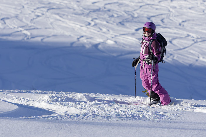 Några lokala hjälmfotingar (4-åringar där allt som syns är en Globen-stor hjälm och ett par barnskidor, reds anm) med tillhörande föräldrar är i princip de enda skidåkarna som syns till. Den stora massan är givetvis kvar på andra sidan av dalgången Val de Bagnes i världskändisen Verbiers enorma skidsystem. Skogspudret nedanför kommer således att förbli orört denna morgon och med den vetskapen skjuter vi fart nedför de nypreparerade och folktomma pisterna istället.
