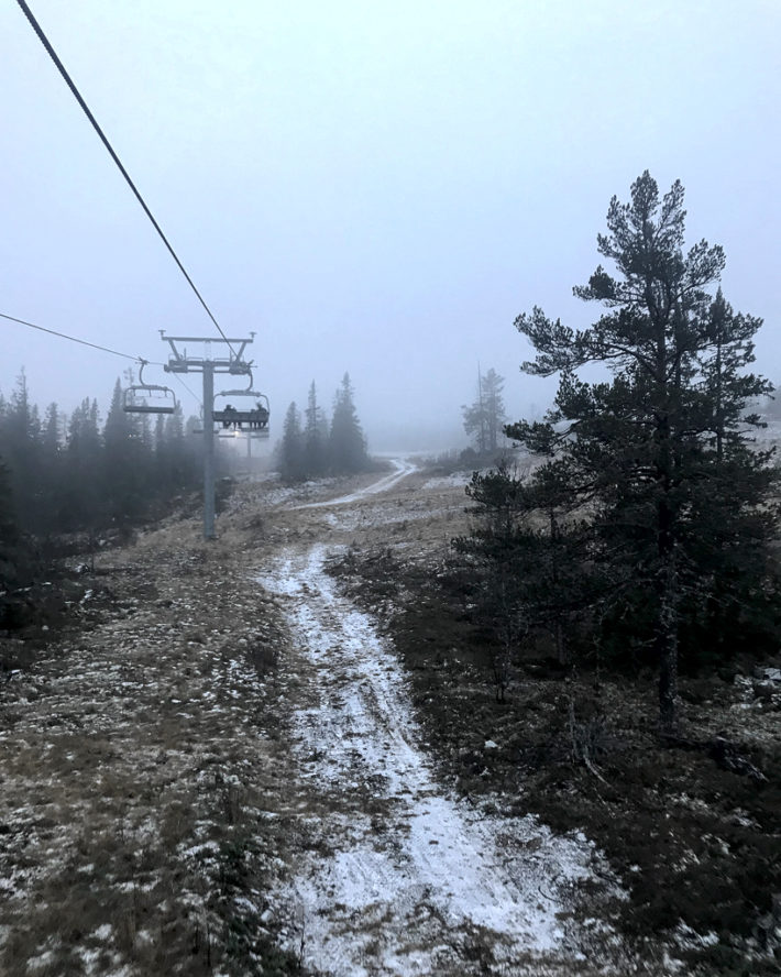 Lördagskvällen bjuder på afterski med Untracked Film Tour på Hovde Sportbar & Kök i Vemdalskalet, och sedan auktion på Skistar Concept Store. Med det är en oerhört lyckad helg över. Nytt för i år är nämligen att det inte är något skidtest på söndagarna. Det brukar helt enkelt inte vara särskilt mycket folk då. Nästa dag är området kring Klövsjö express klart lugnare, och nu temperaturen har krupit ned under nollan. Så fick vi den efterlängtade försäsongsisen ändå. Vi njuter av de ensamma, hårda och snabba pisterna. Vid 12 börjar det snöa lite lätt, kanske är vintern äntligen påväg?