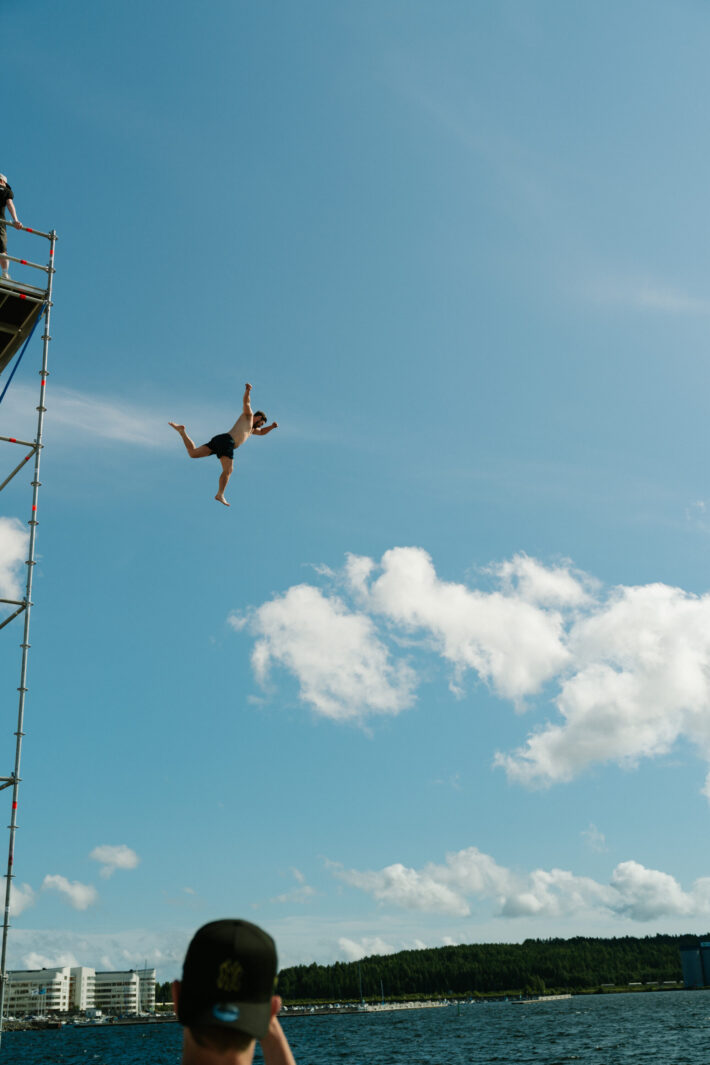 – Känslan att hoppa från 12 meter som vi gör i dag är både skräckinjagande och superhäftigt. Det kan vara farligt, absolut. Men från 10 meter så bryter man kanske bara ett revben, punkterar lungan eller får hjärnskakning. Inte värre än så, säger han.