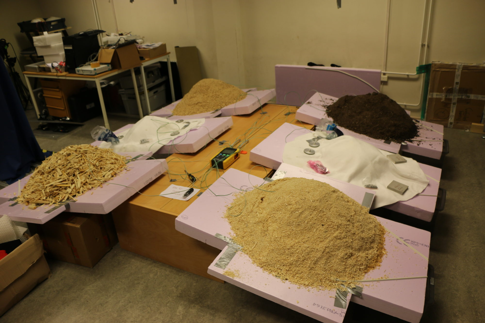 – Det är egentligen ett spillmaterial från sågverk. För ett antal år sedan kunde man kunde få tag på det här gratis men genom klimatförändringarna har det blivit en ökad efterfrågan så du får betala en bra slant nu för de här träbaserade materialen.