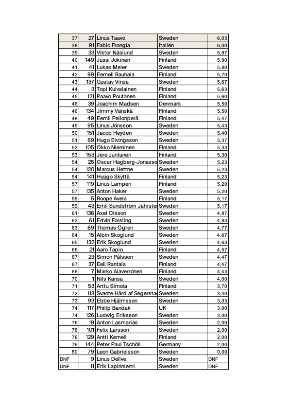 I skidklassen fortsätter finske Henri Juntunen med att öppna en helt ny dubbelklippa, precis till vänster om Långflyget och rakt ned. Härmed döpt till Finska Dubbeln.